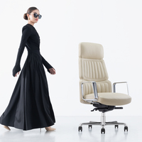 Silla de oficina ejecutiva de lujo de cuero genuino-Diseño de respaldo alto Altura ajustable Soporte ergonómico para espacio de trabajo ejecutivo