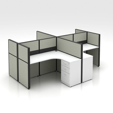 Máy trạm phân vùng văn phòng 4 người, thiết kế hình chữ L hiện đại, vách ngăn nội thất văn phòng bền