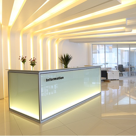 אלומיניום מסגרת זכוכית פנל סטנדרטי גודל l צורת דלפק סלון משמש עומד לבן מודרני משרד דלפק קבלת